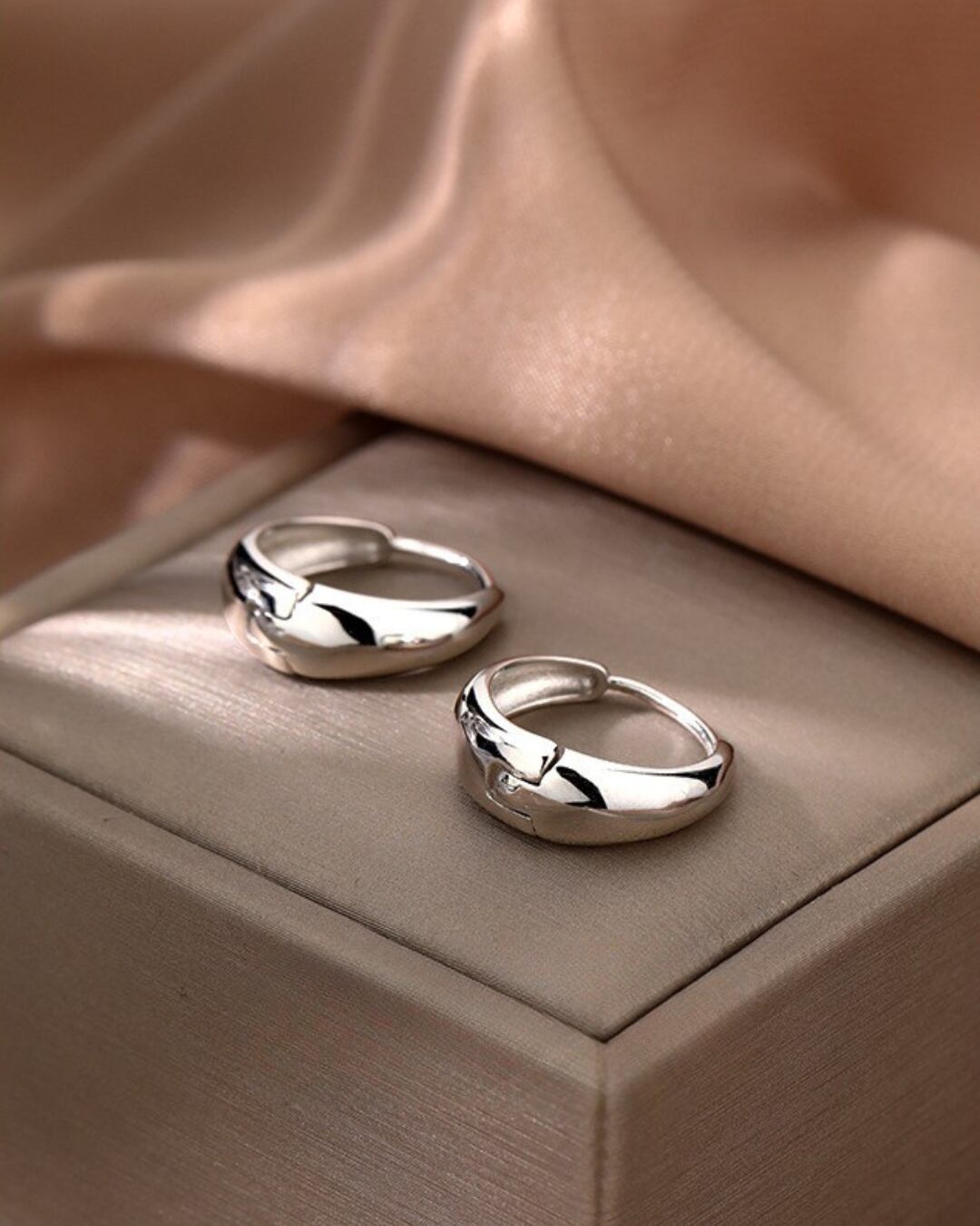 ゴールドとシルバーの2色展開、シンプルながらも存在感のあるメタルフープピアス。
