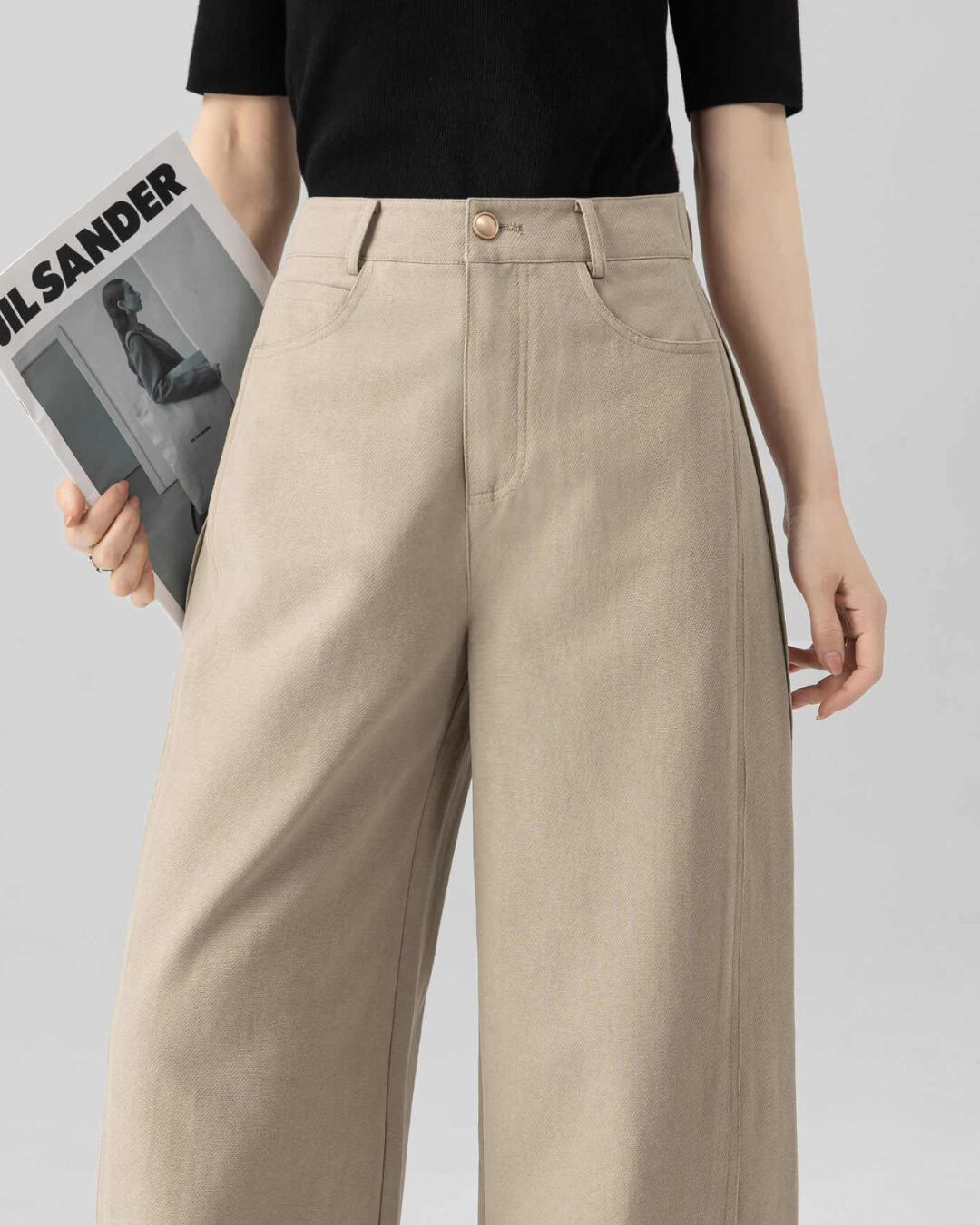 Full Length Cotton Twill Material Wide Leg Wide Pants S00577
