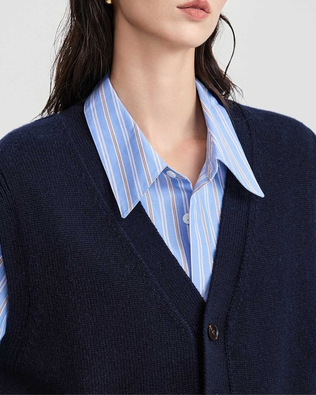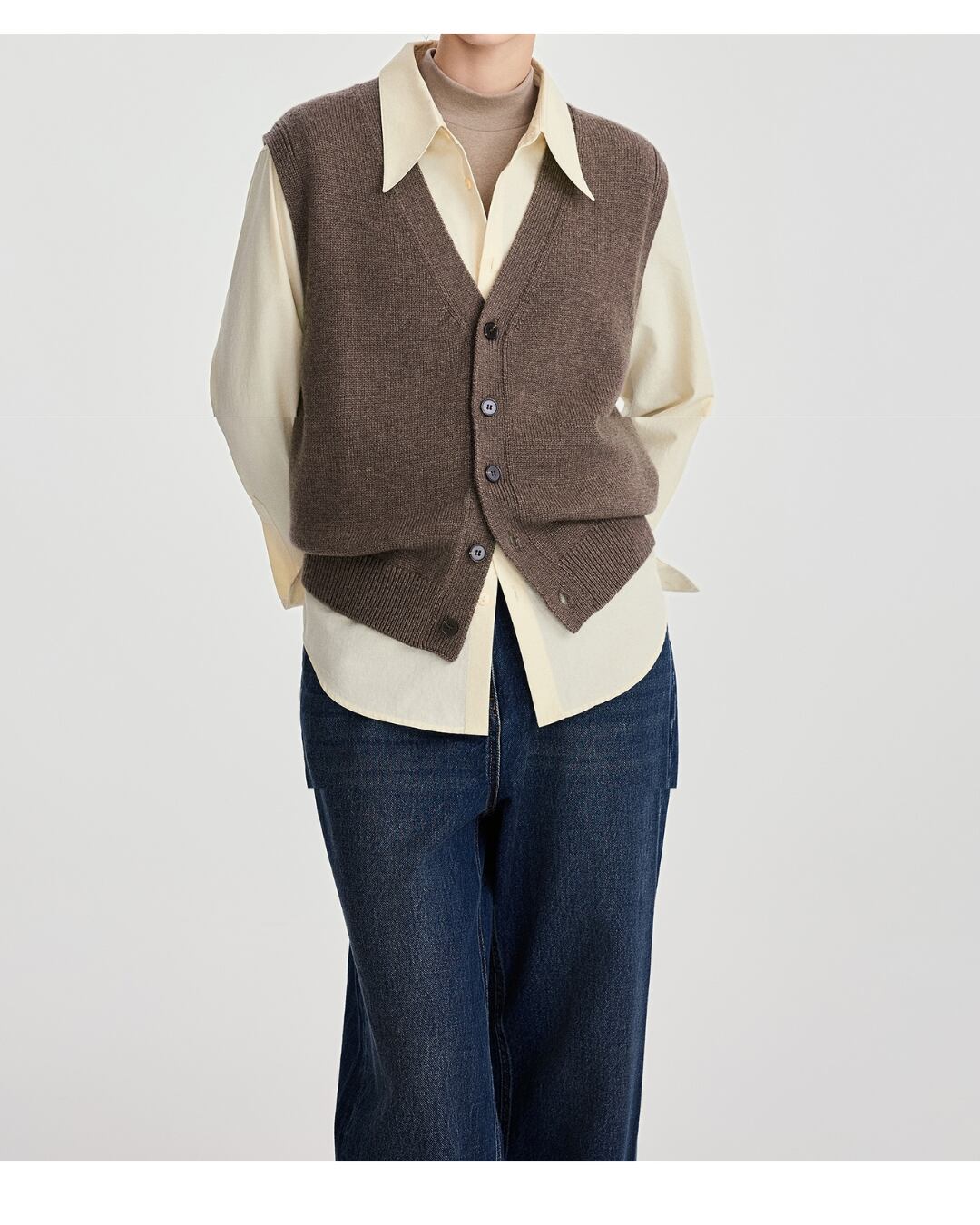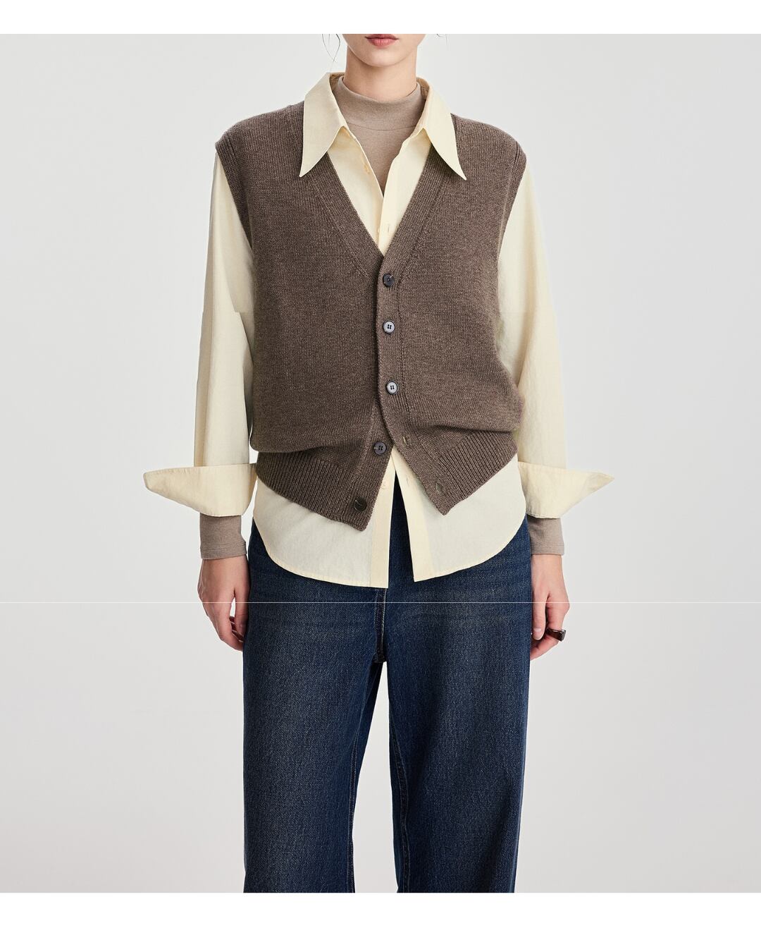 ボタンを開けてシャツやブラウスとレイヤードしたり、シンプルなトップスの上から羽織ったりと、様々な着こなしが楽しめます。
