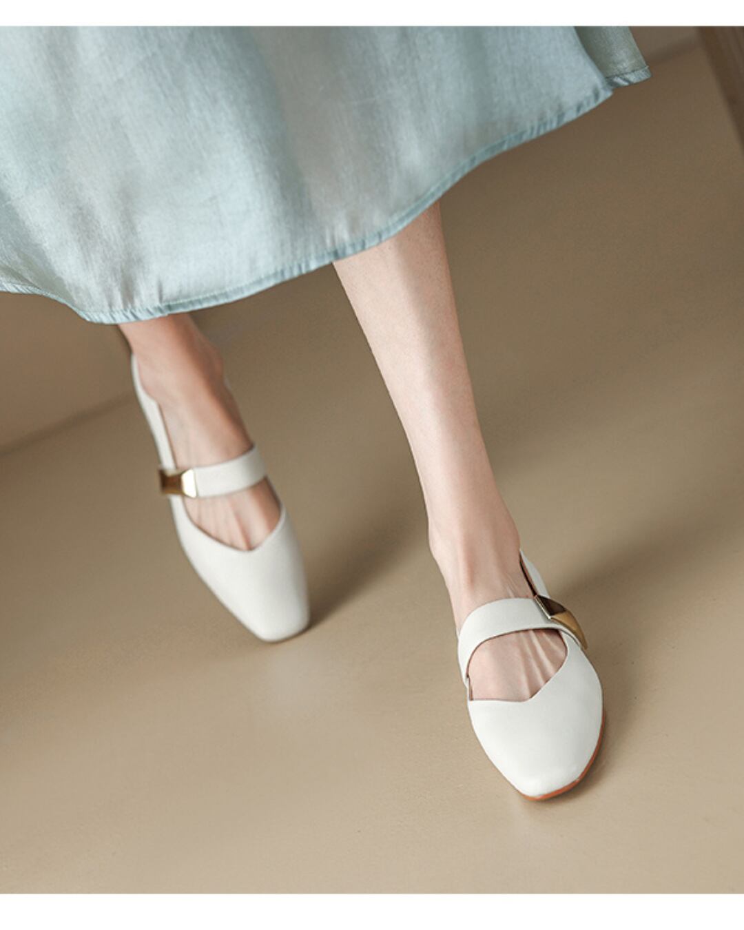 どんな服装にも合わせやすい、シンプルながらも存在感のあるフラットシューズ。
