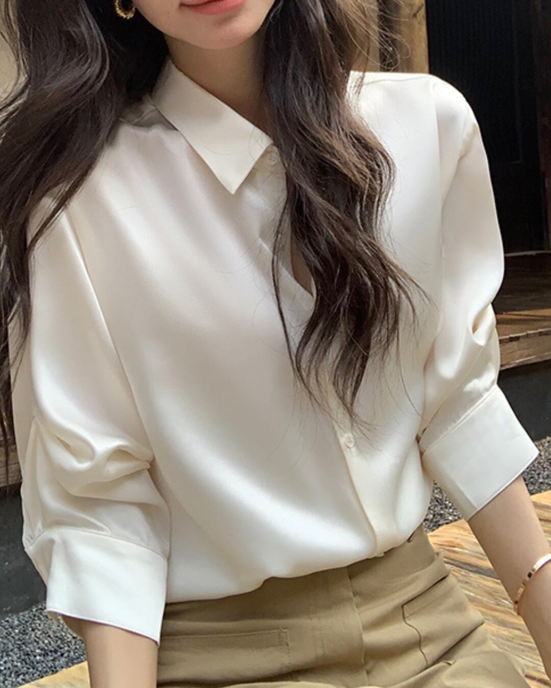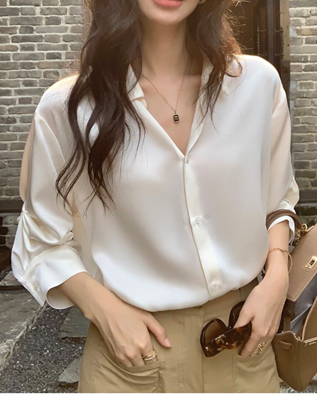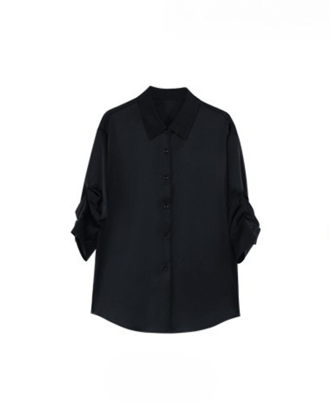 Silk Shirt Straight Silhouette Button-Down Shirt S00590