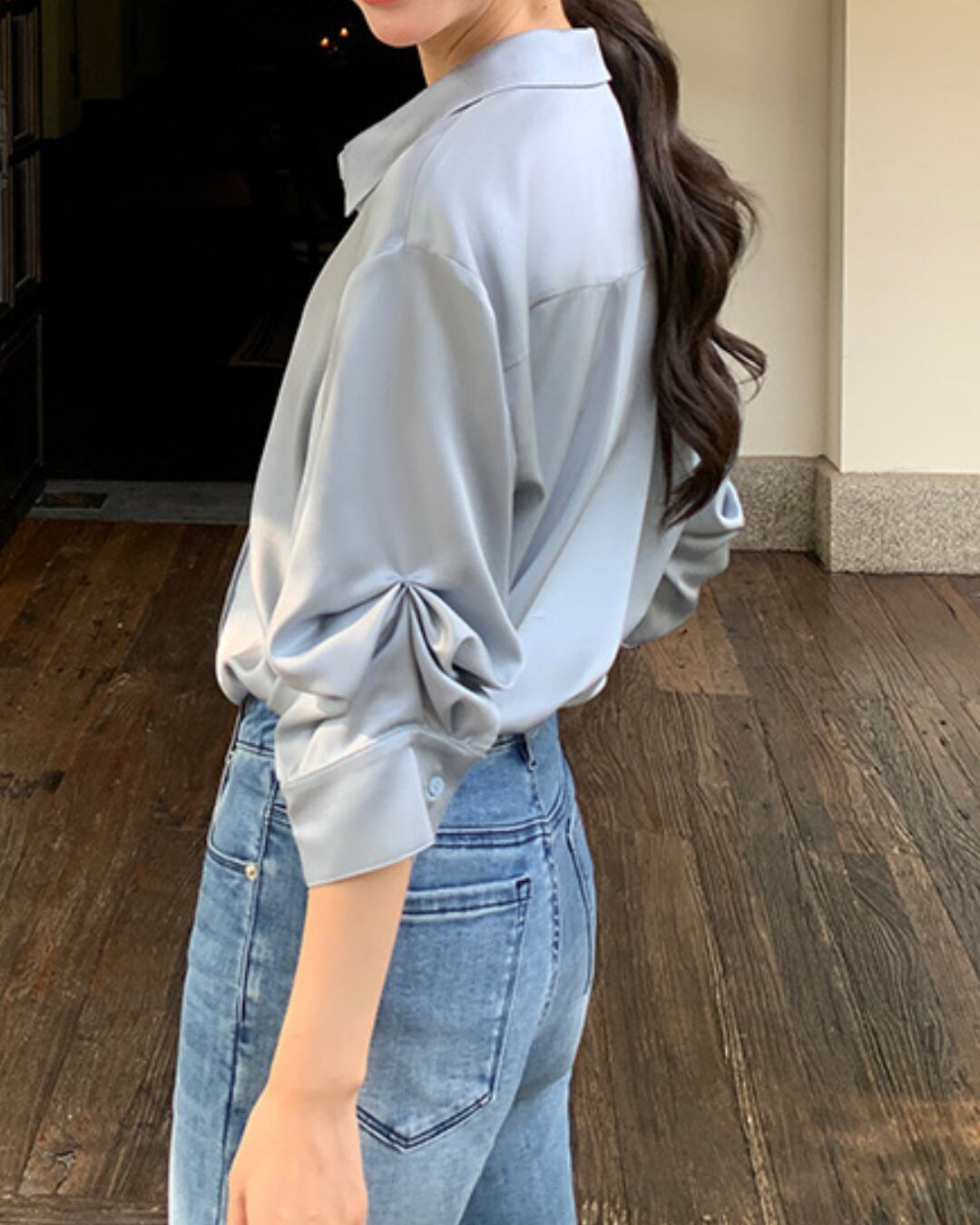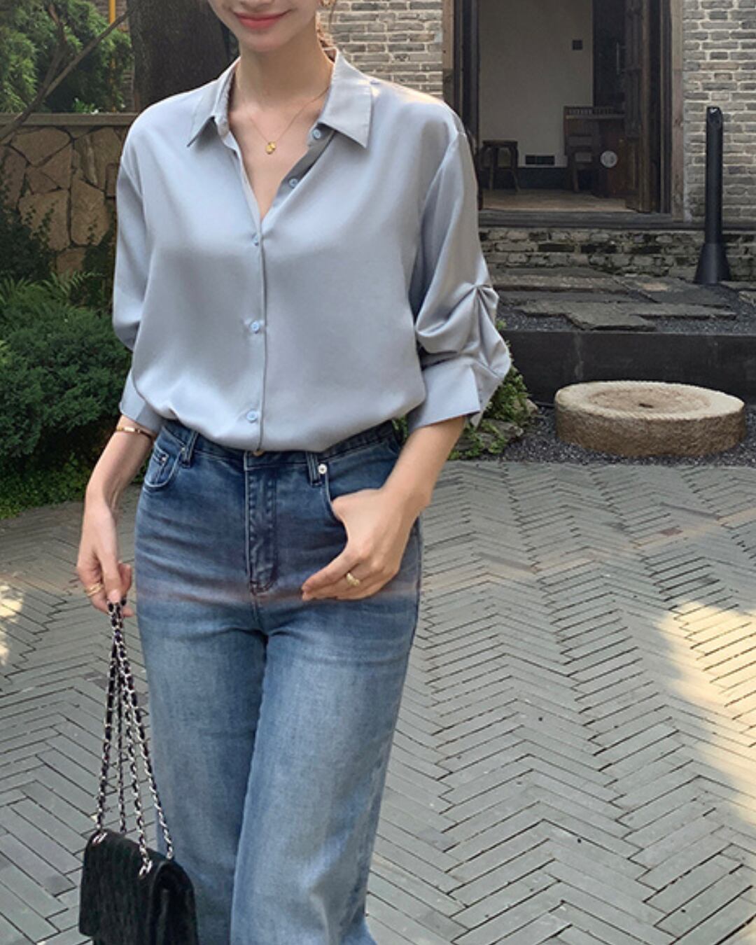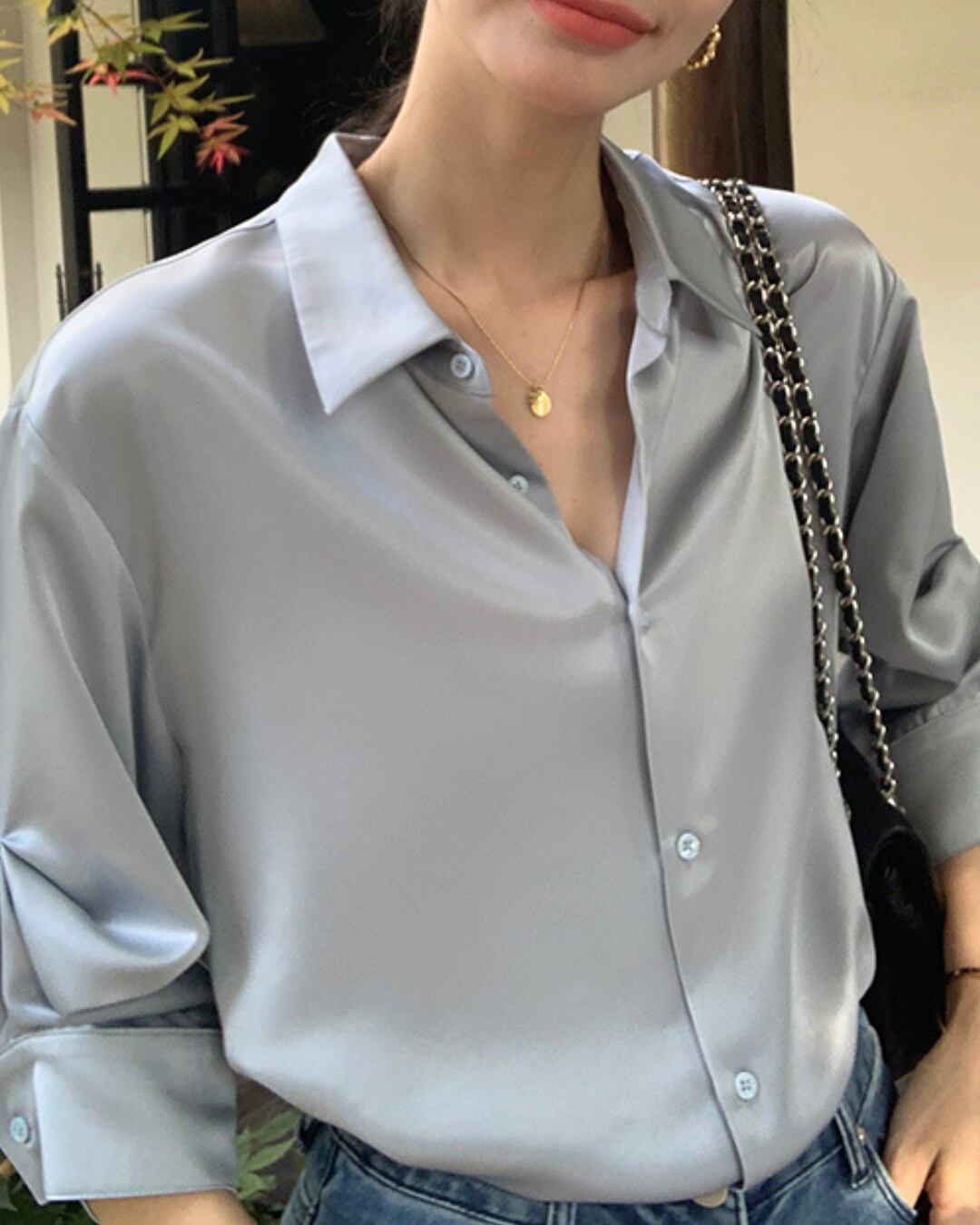 Silk Shirt Straight Silhouette Button-Down Shirt S00590