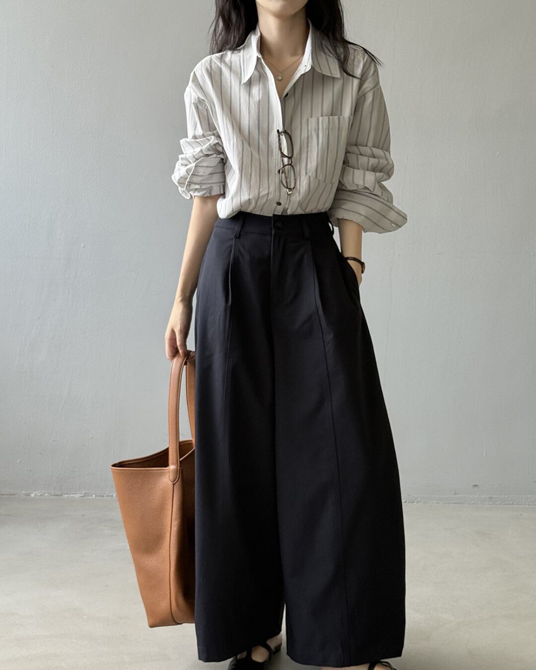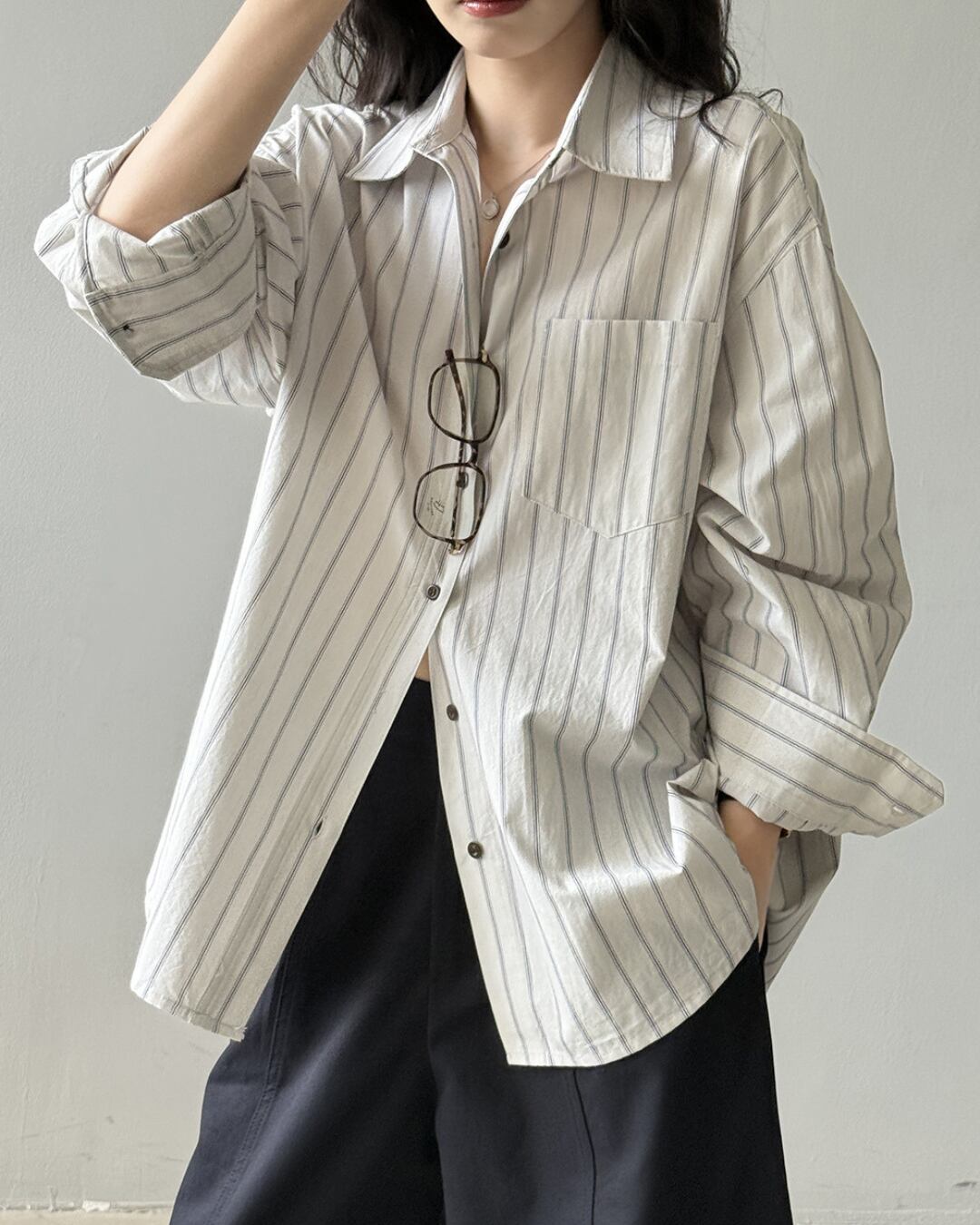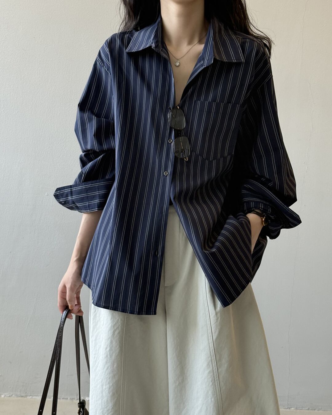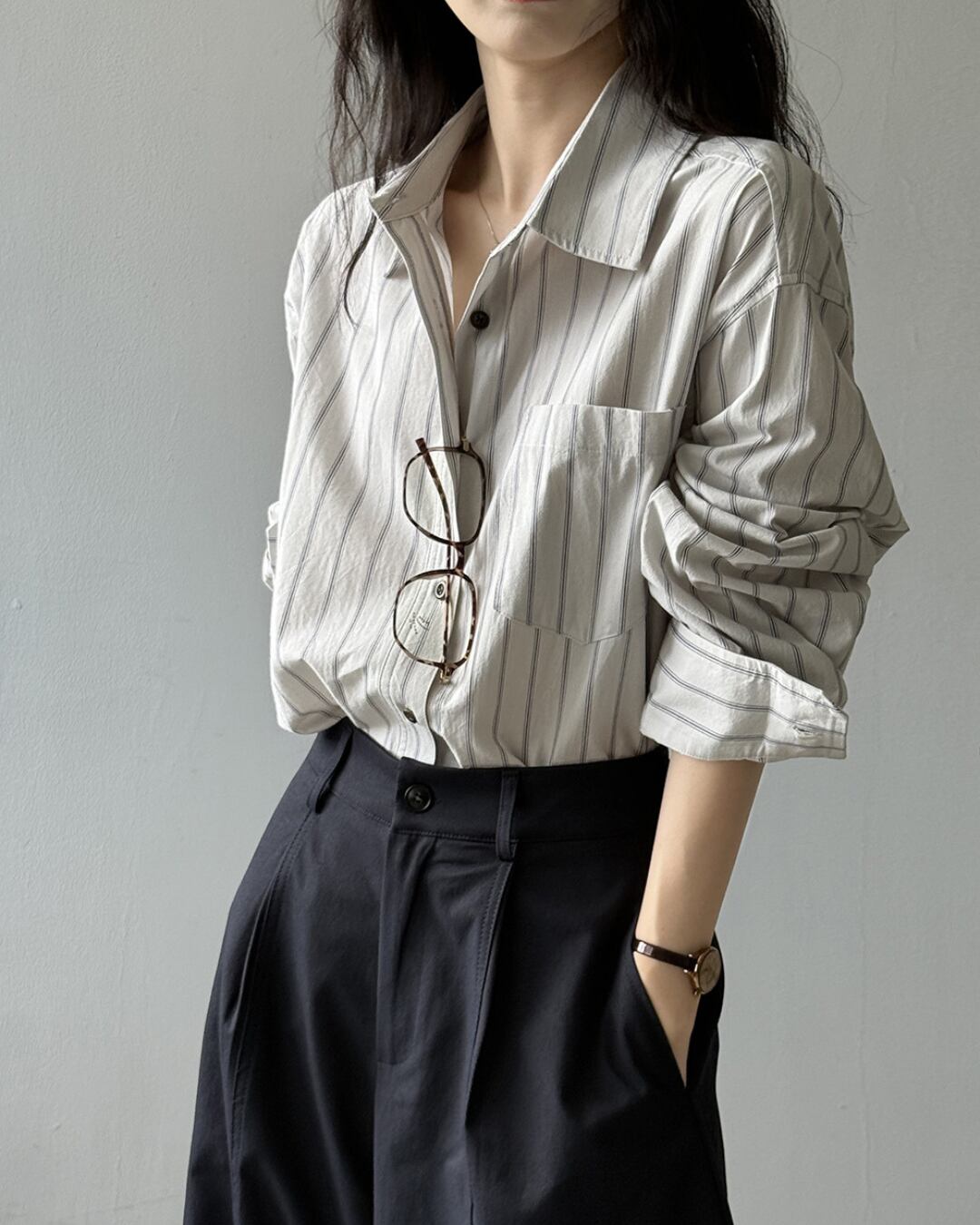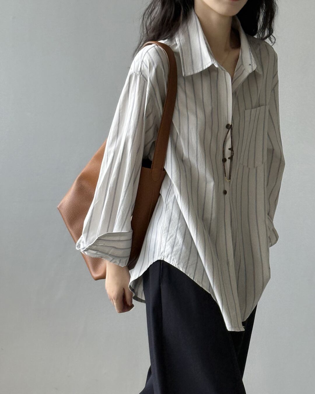 着回し力抜群のストライプ柄オーバーサイズシャツ。
