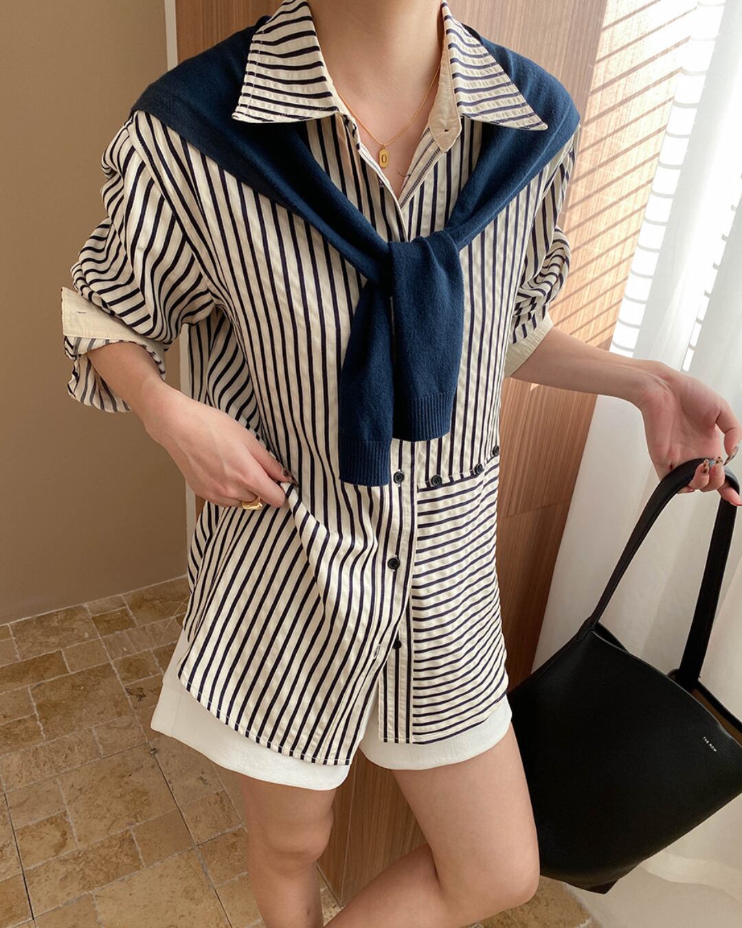 Vertical Stripe Oversized Long Sleeve Shirt S00034