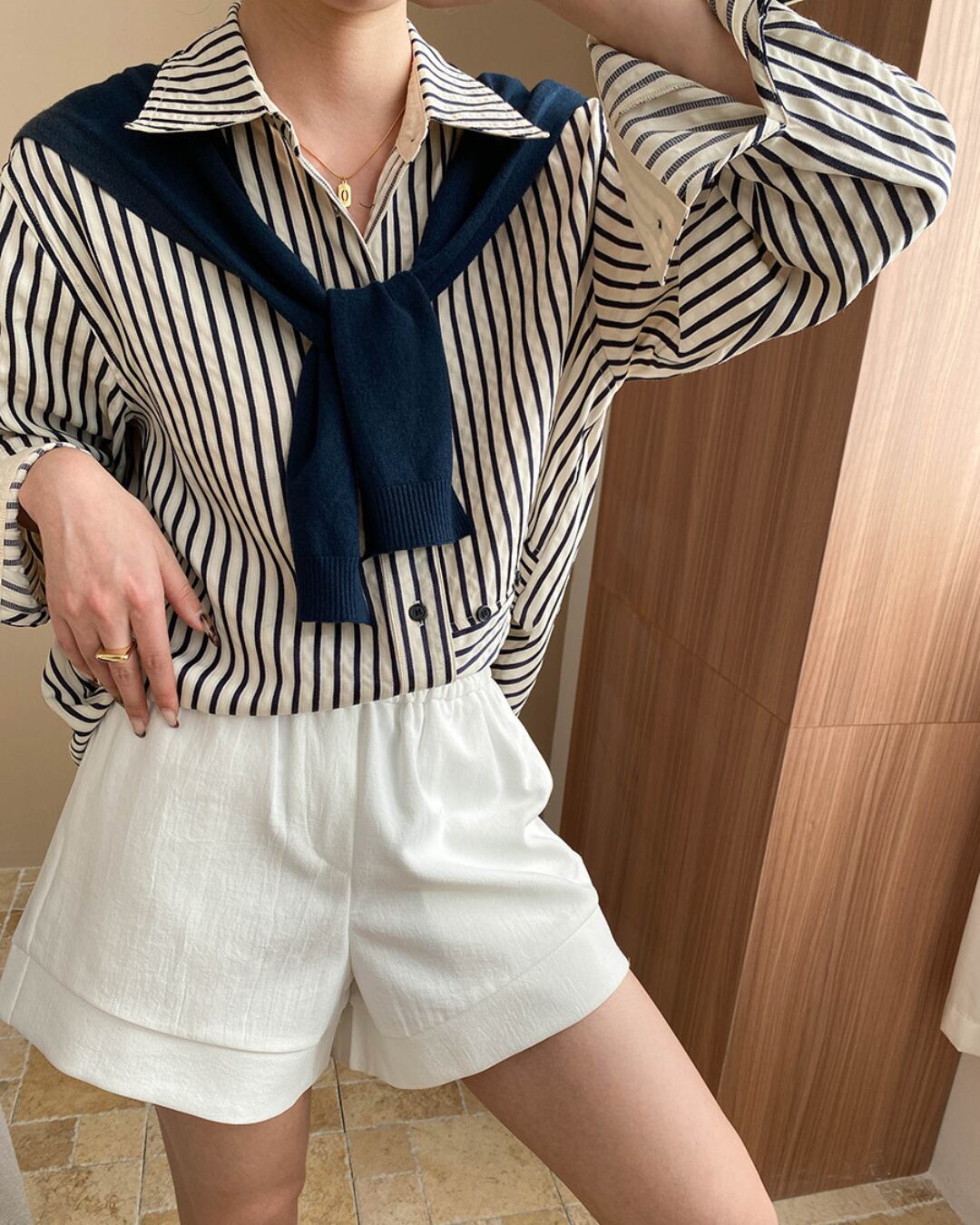 カジュアルなショートパンツと合わせて、休日のお出かけスタイルに。一枚でこなれた雰囲気を演出できます。
