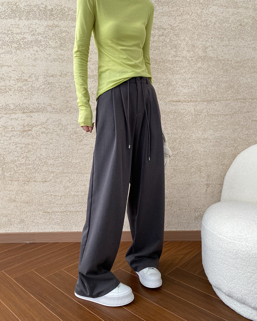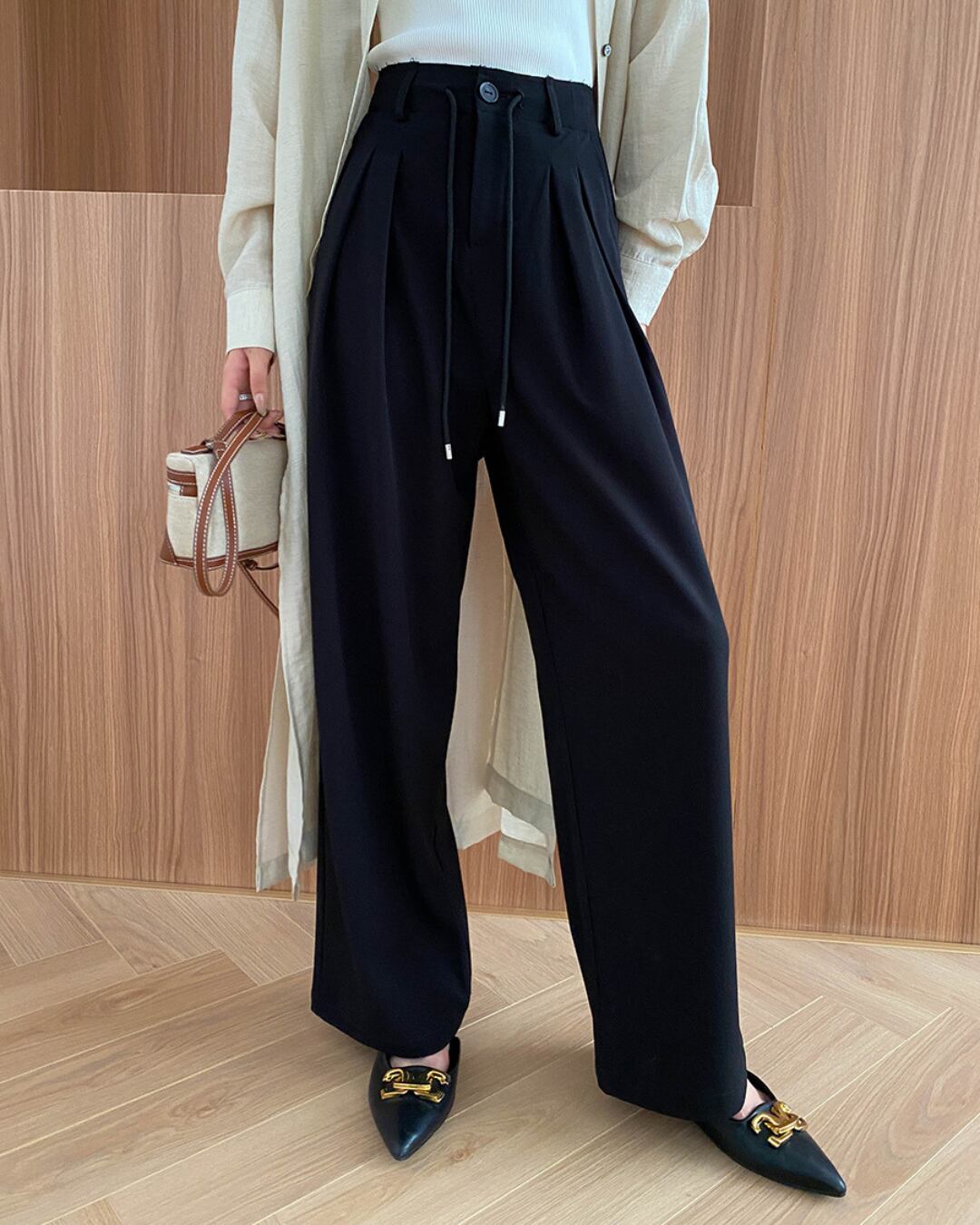 Center Press High Waist Wide Pants S00043