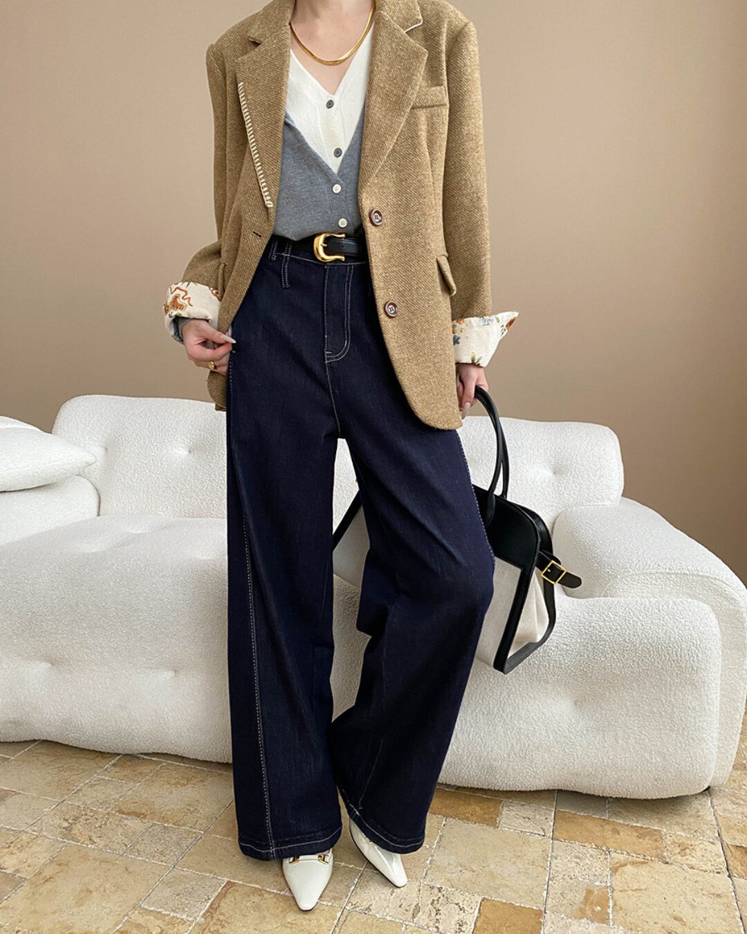 こなれ感を演出するステッチがポイントのワイドデニムパンツ。