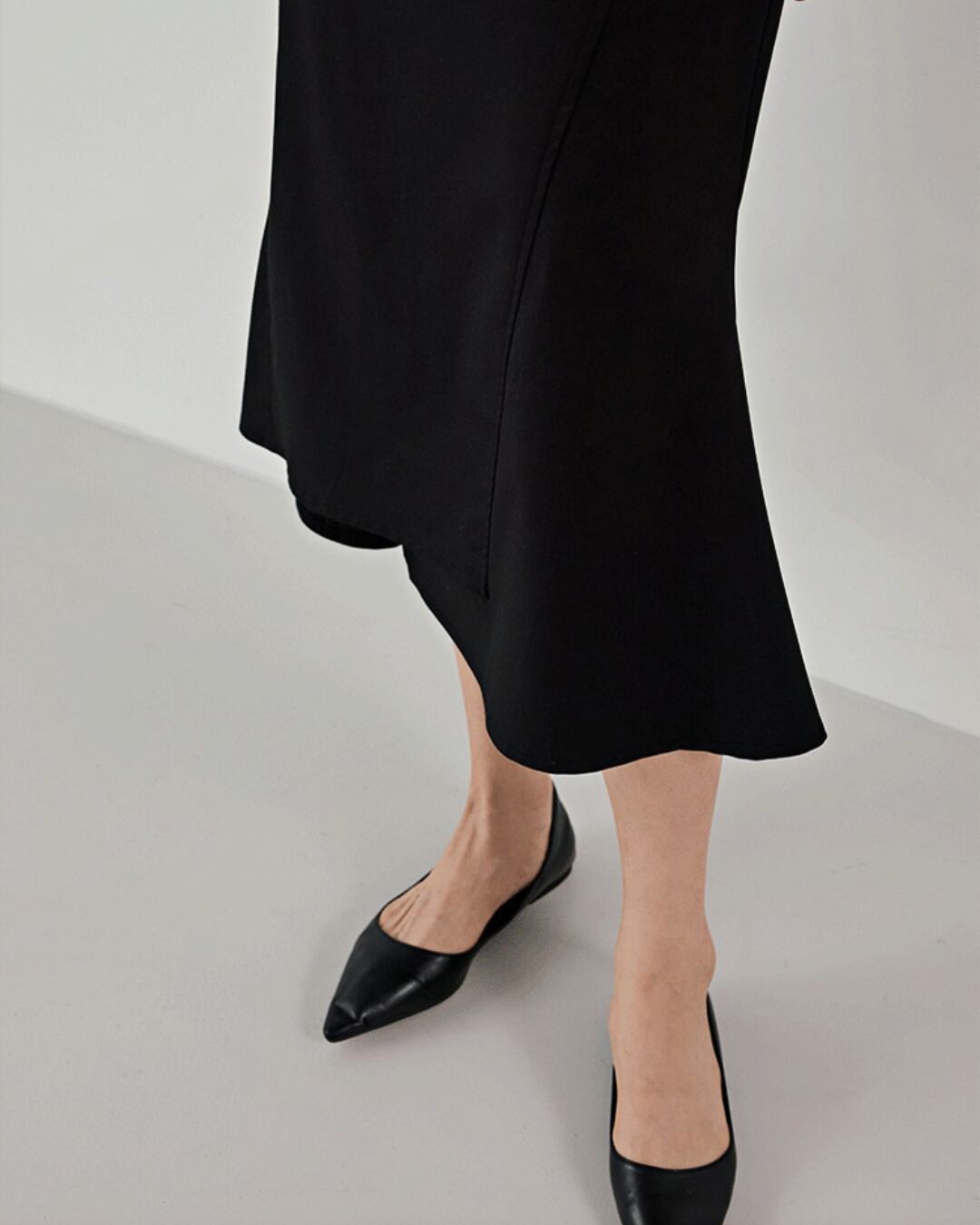 裾にかけて広がるフレアが、歩くたびに軽やかな動きをプラス。