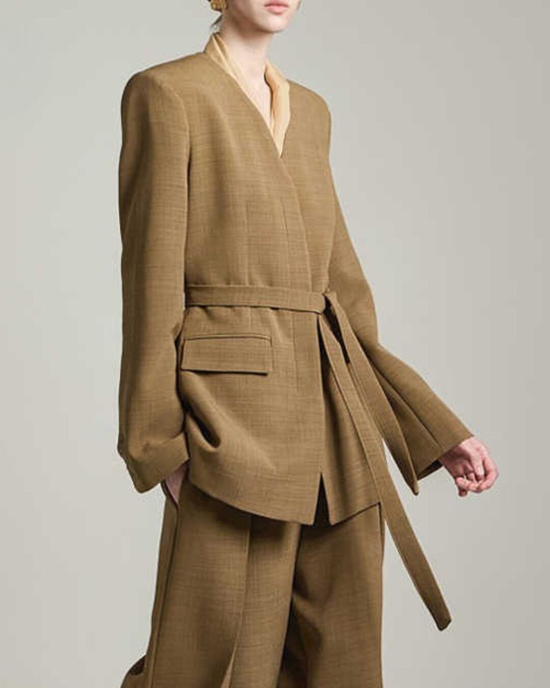 洗練されたラップスタイルが魅力のテーラードジャケット。